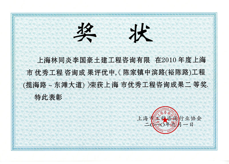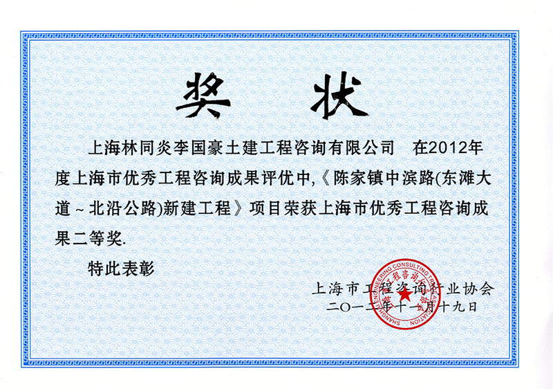 陳家鎮(zhèn)中濱路(裕城路)工程(攬海路-東灘大道) 二等獎(jiǎng)