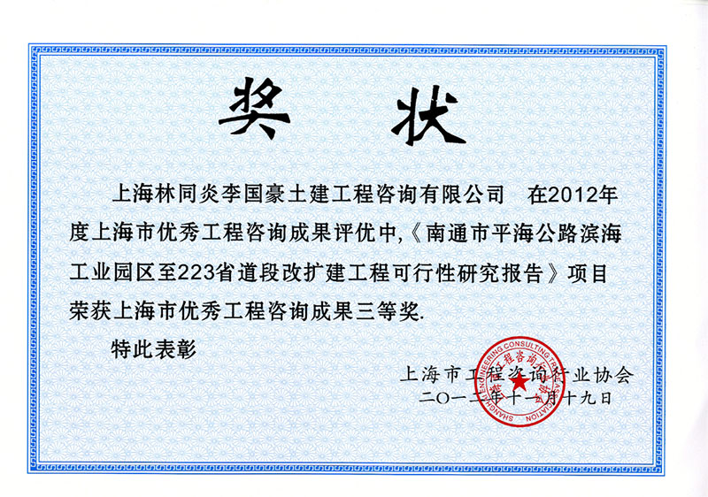 南通市平海公路濱海工業(yè)園區(qū)至223省道段改擴(kuò)建工程 三等獎(jiǎng)