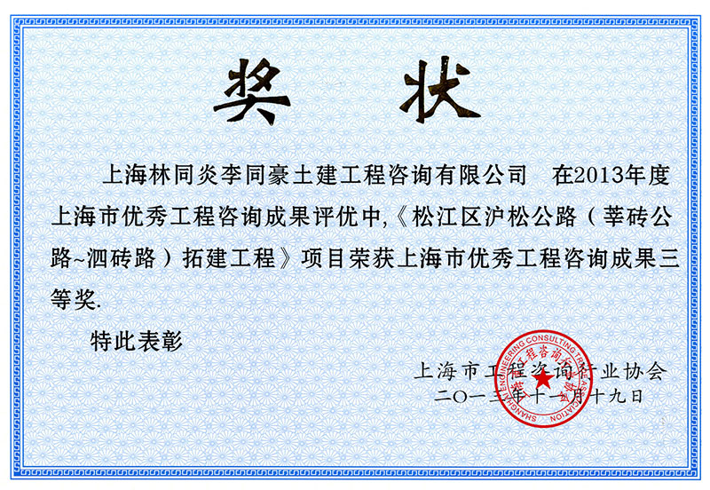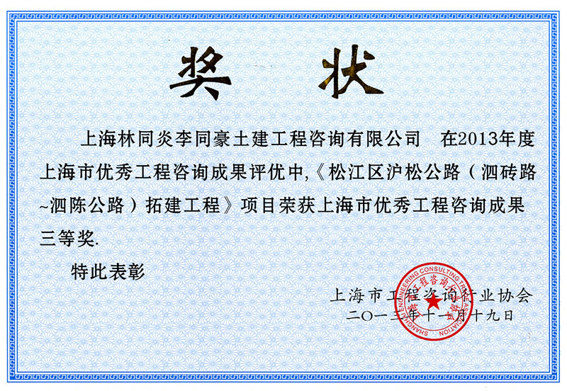 松江區(qū)滬松公路(泗磚路-泗陳公路)拓建工程 三等獎(jiǎng)