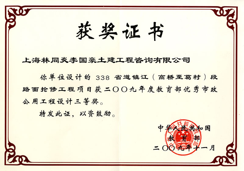 338省道鎮(zhèn)江(高橋至葛村)段路面搶修工程 三等獎(jiǎng)