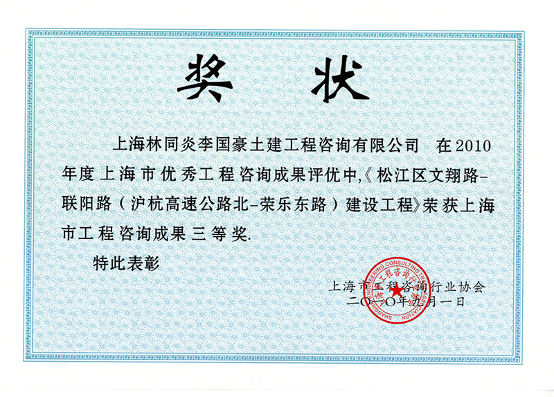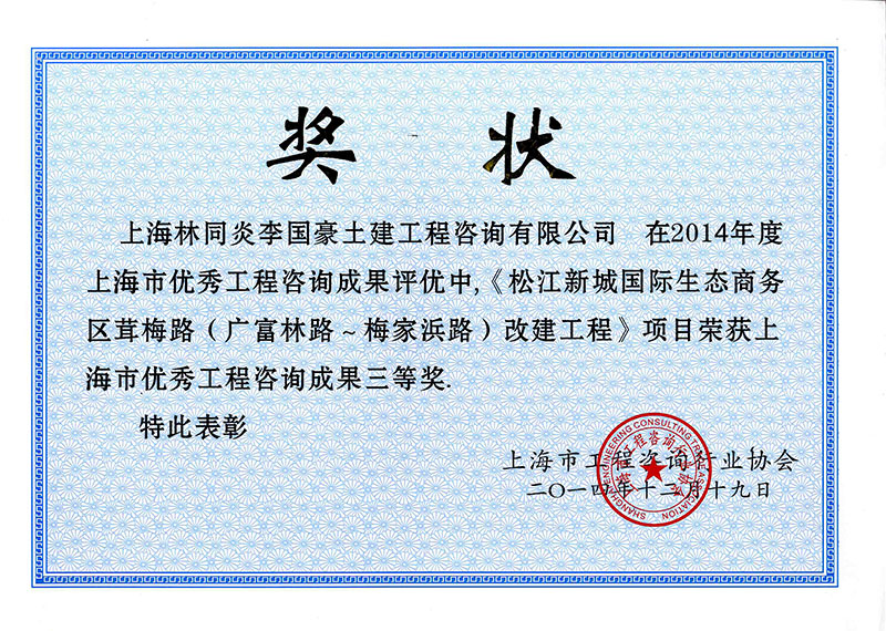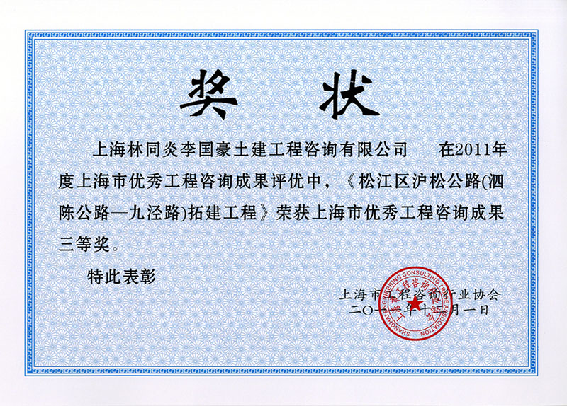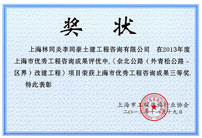 佘北公路(外青松公路-區(qū)界)改建工程 三等獎(jiǎng)