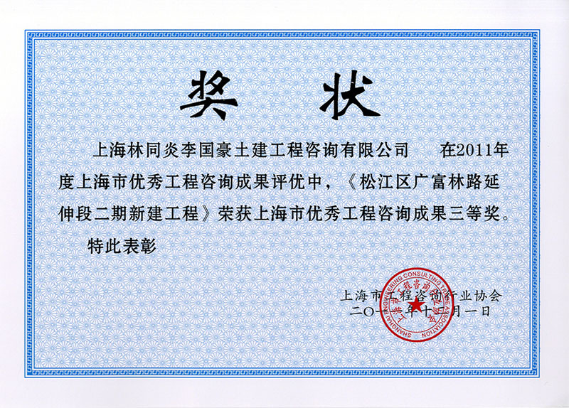 松江區(qū)廣富林路延伸段二期新建工程 三等獎(jiǎng)