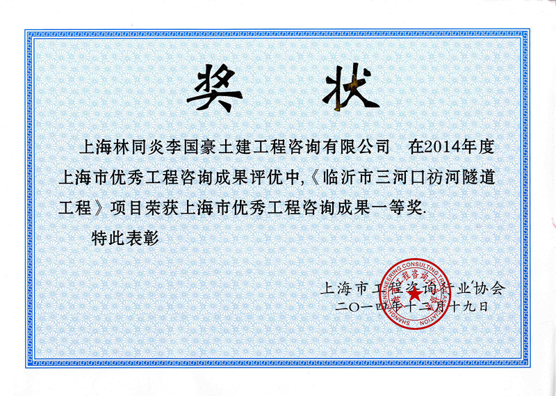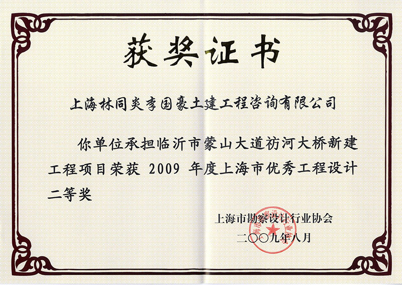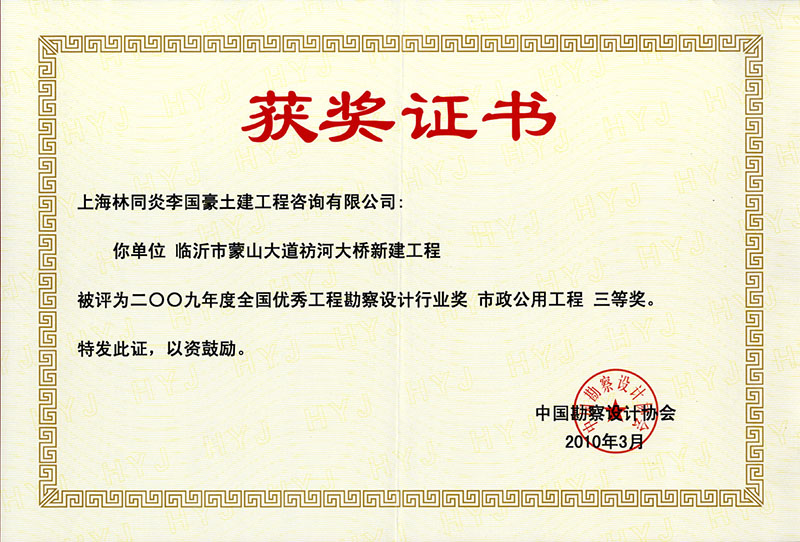 臨沂市蒙山大道枋河橋新建工程 三等獎(jiǎng)