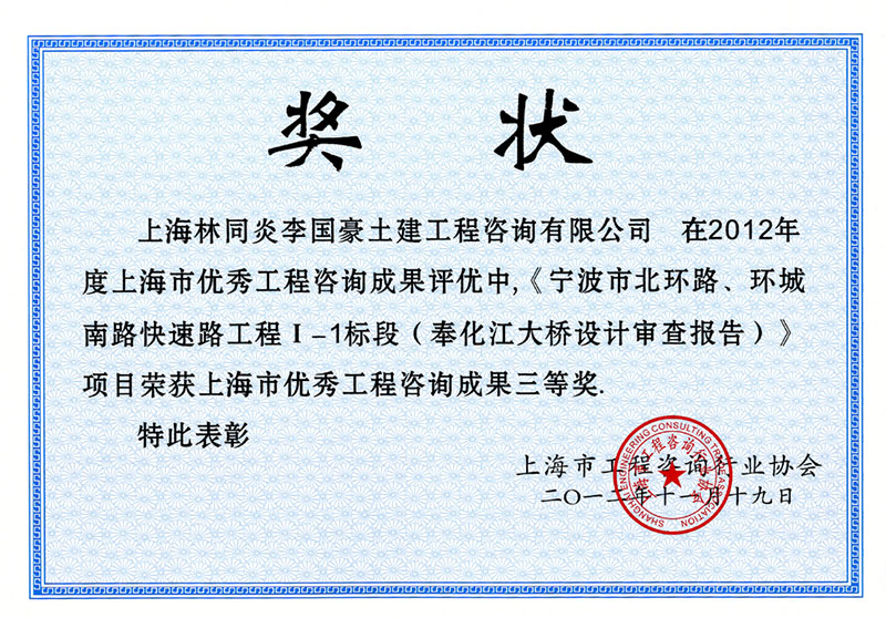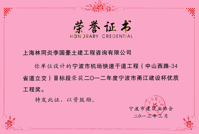 寧波市北環(huán)路、環(huán)城南路快速路工程I-1標(biāo)段 三等獎(jiǎng)