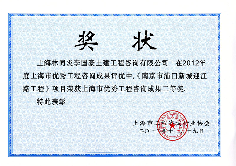 南京市浦口新城迎江路工程 二等獎(jiǎng)