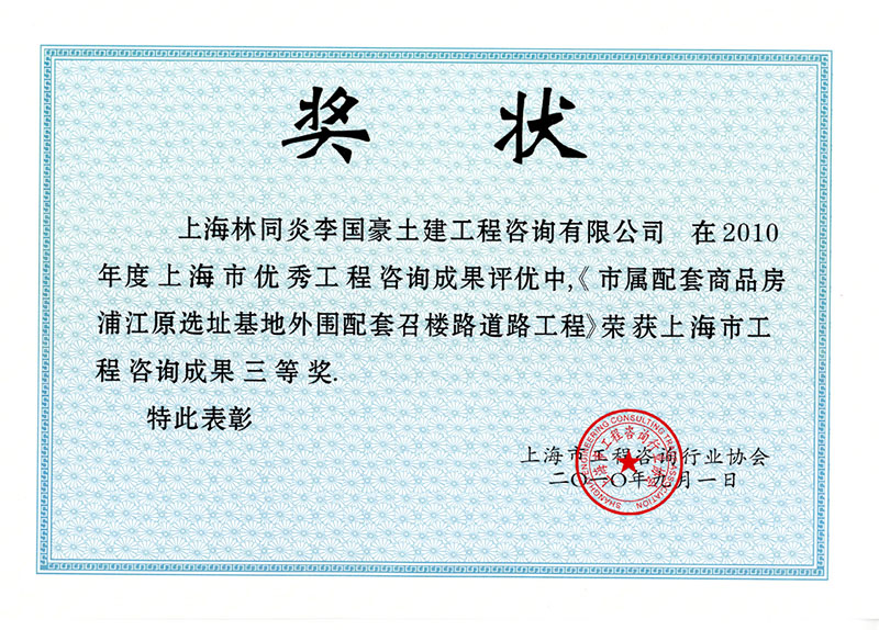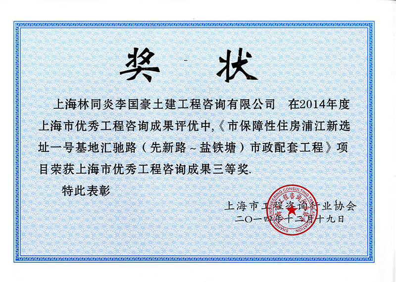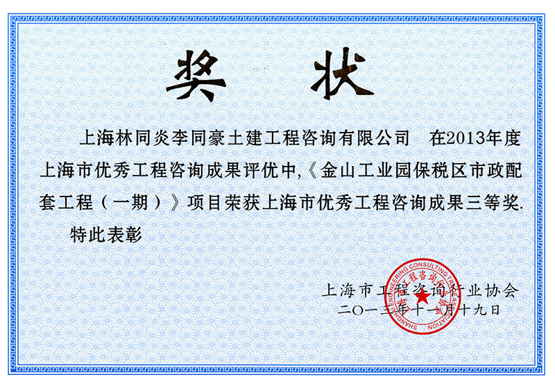 金山工業(yè)園保稅區(qū)市政配套工程(一期) 三等獎(jiǎng)