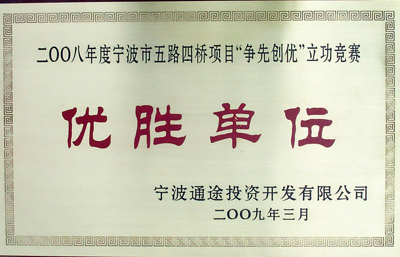 寧波市五路四橋項(xiàng)目“爭先創(chuàng)優(yōu)”立功競賽優(yōu)勝單位