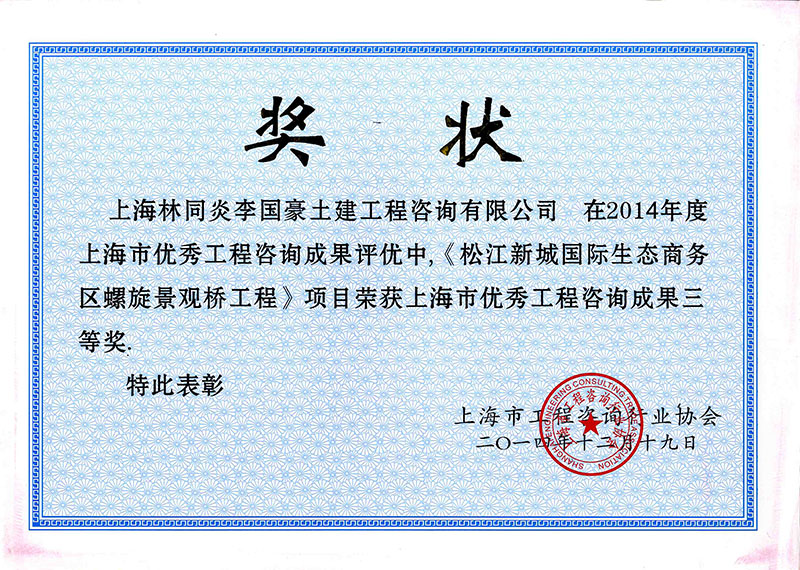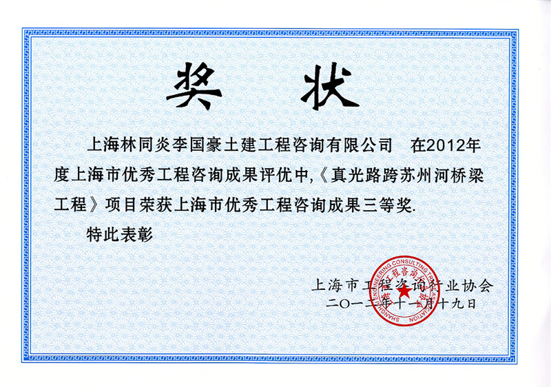 真光路跨蘇州河橋梁工程 三等獎(jiǎng)