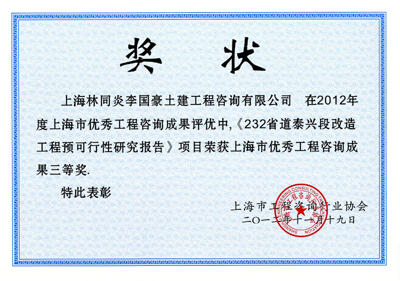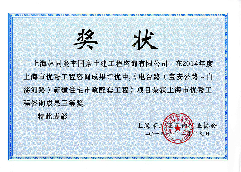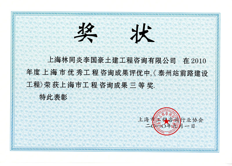 泰州站前路建設(shè)工程 三等獎(jiǎng)