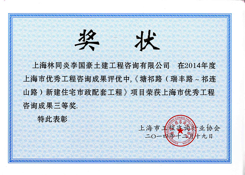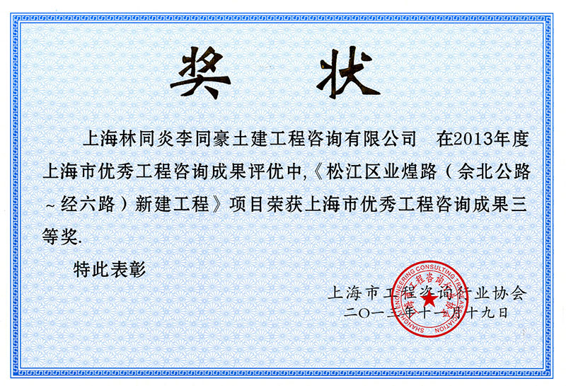 松江區(qū)業(yè)煌路(佘北公路-經(jīng)六路)新建工程 三等獎(jiǎng)