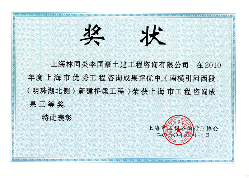 南橫引河西段(明珠湖西側(cè))新建橋梁工程 三等獎(jiǎng)