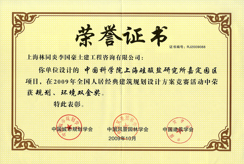 中國科學(xué)院上海硅酸鹽研究所嘉定園區(qū) 規(guī)劃、環(huán)境雙金獎(jiǎng)
