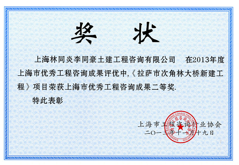 拉薩市次角林大橋新建工程 二等獎(jiǎng)