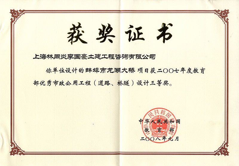 蚌埠市龍湖大橋 三等獎(jiǎng)