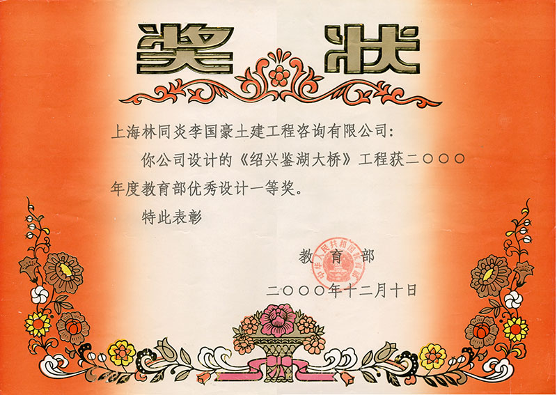 紹興鑒湖大橋 一等獎(jiǎng)