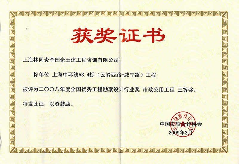 上海中環(huán)線A3.4標(biāo)(云嶺西路-威寧路) 三等獎(jiǎng)