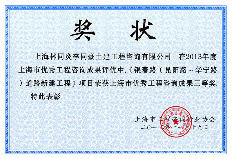 銀春路(昆陽路-華寧路)道路新建工程 三等獎(jiǎng)