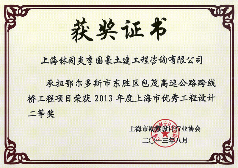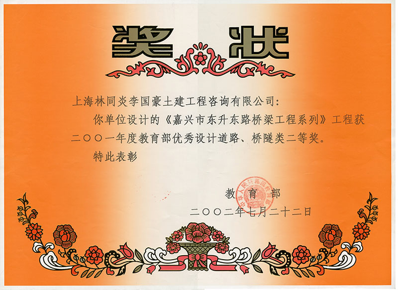 嘉興市東升東路橋梁工程系列 二等獎(jiǎng)