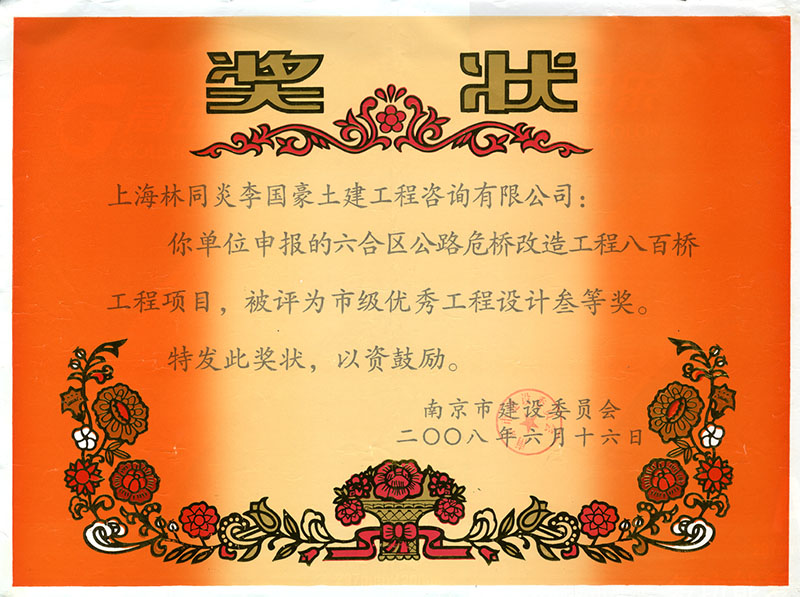 六合區(qū)八百橋工程 三等獎(jiǎng)