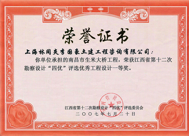 南昌市生米大橋 一等獎(jiǎng)