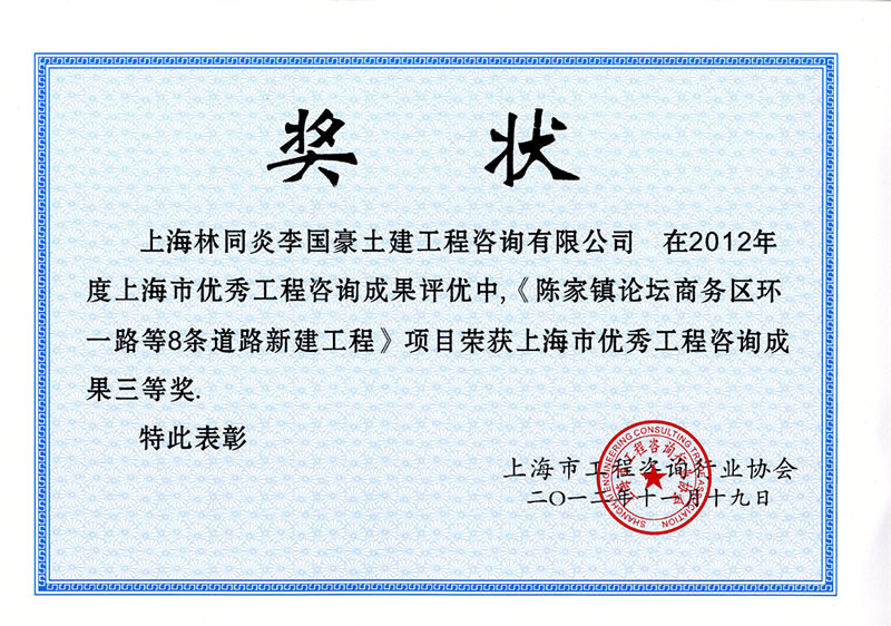 陳家鎮(zhèn)論壇商務(wù)區(qū)環(huán)一路等8條道路新建工程 三等獎(jiǎng)