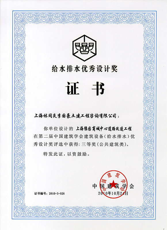 上海豫園商城中心道路改造工程 三等獎(jiǎng)