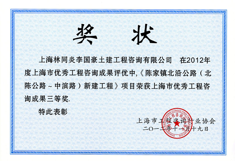 陳家鎮(zhèn)北沿公路(北陳公路-中濱路)新建工程 三等獎(jiǎng)