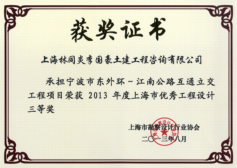 寧波東外環(huán)-江南公路互通立交工程 三等獎(jiǎng)