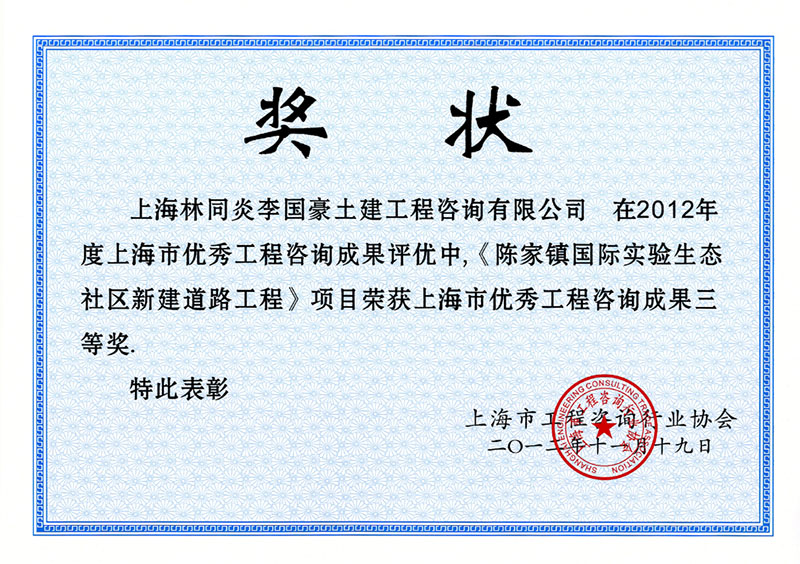 陳家鎮(zhèn)國際實(shí)驗(yàn)生態(tài)社區(qū)新建道路工程 三等獎(jiǎng)