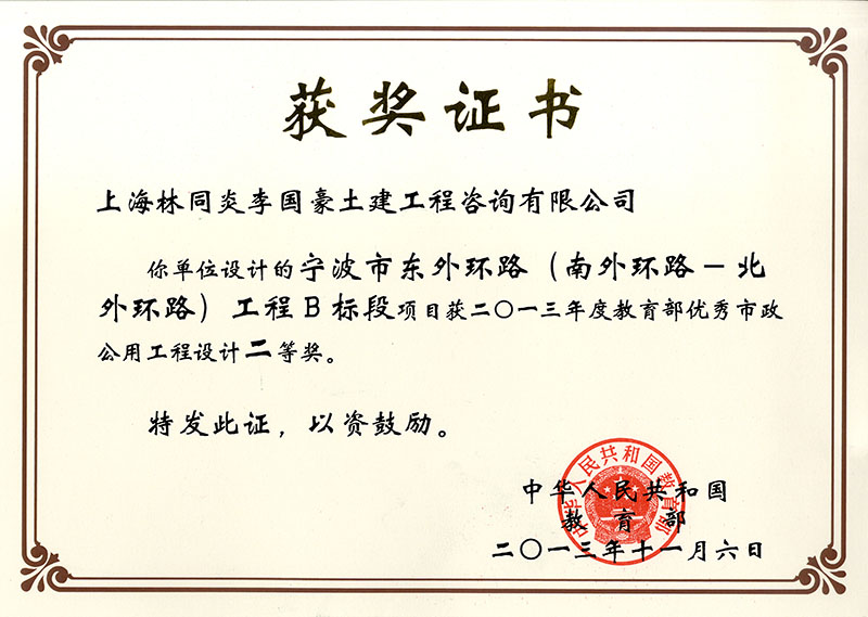 寧波市東外環(huán)路(南外環(huán)路-北外環(huán)路)工程B標(biāo)段 二等獎(jiǎng)