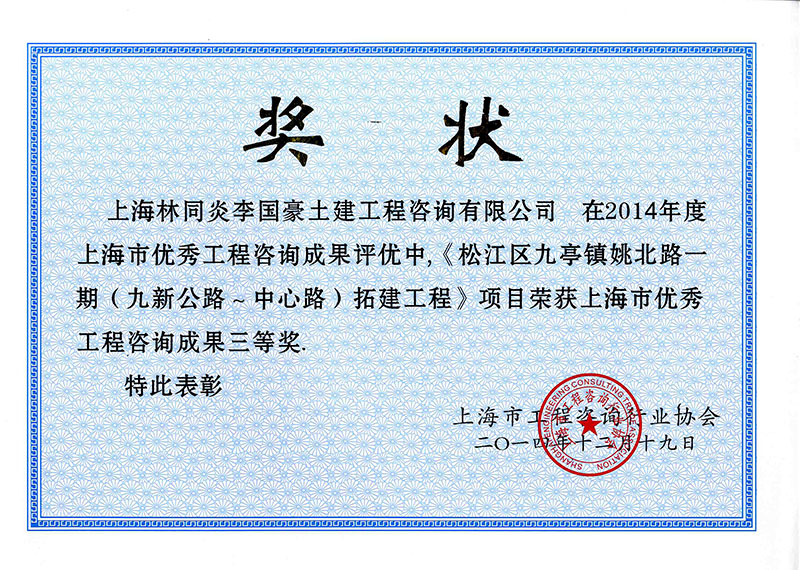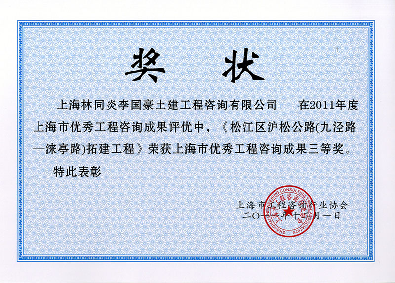 松江區(qū)滬松公路(九涇路淶亭路)拓建工程 三等獎(jiǎng)