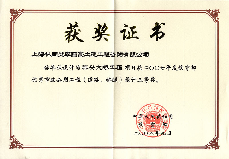 泰興大橋工程 三等獎(jiǎng)