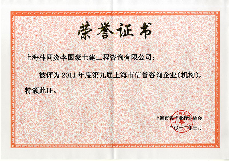 2011年度上海市信譽(yù)咨詢企業(yè)