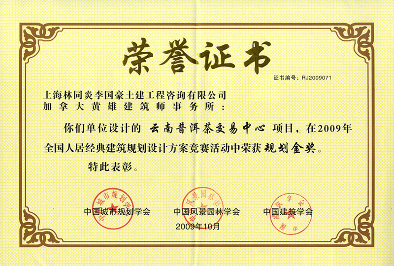 云南普洱茶交易中心 規(guī)劃金獎(jiǎng)