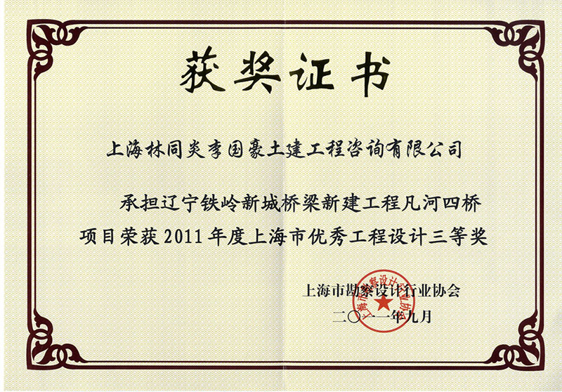 遼寧鐵嶺新城橋梁新建工程凡河四橋項(xiàng)目 三等獎(jiǎng)