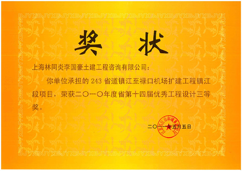 243省道鎮(zhèn)江至祿口機(jī)場擴(kuò)建工程鎮(zhèn)江段項(xiàng)目 三等獎(jiǎng)