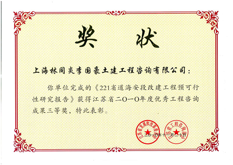 221省道海安段改建工程 三等獎(jiǎng)