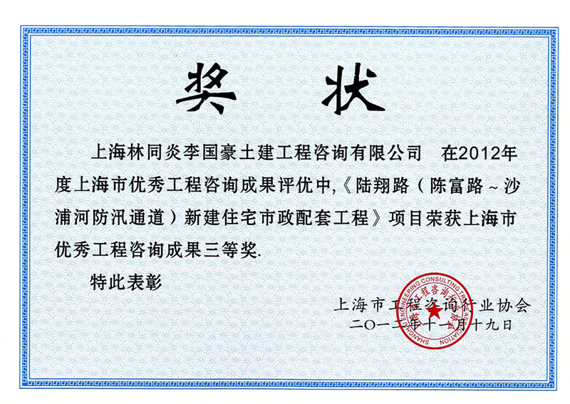 陸翔路(陳富路-沙浦河防汛通道)新建住宅市政配套工程 三等獎(jiǎng)
